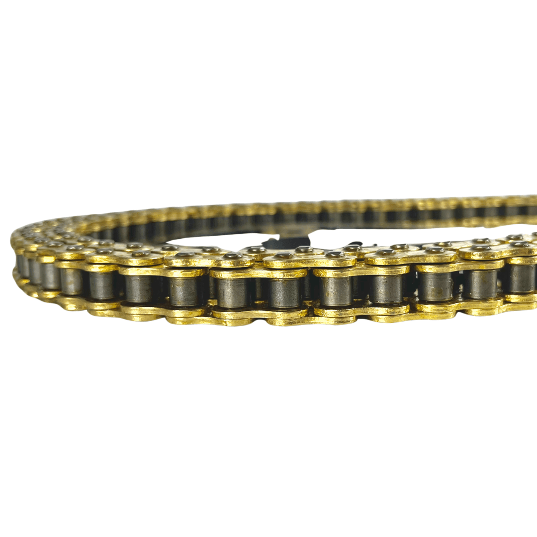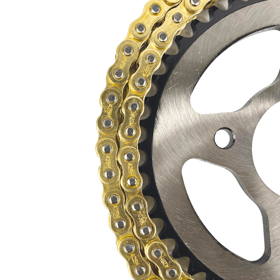 Su cadena 45T/14T 428H-136L garantiza un movimiento preciso y eficiente , reduciendo el desgaste y manteniendo una transmisión suave y confiable . Además, su acabado en color dorado no solo brinda una apariencia deportiva y moderna , sino también una capa adicional de protección anticorrosiva .