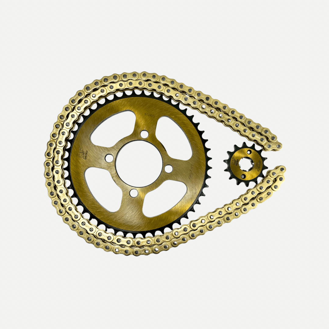- Tipo: Kit completo (piñón, catalina y cadena)