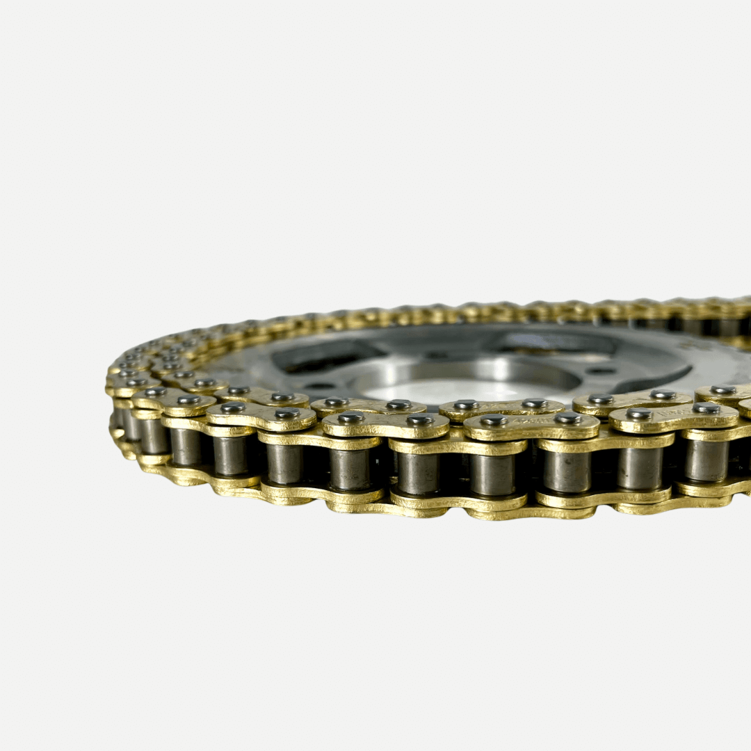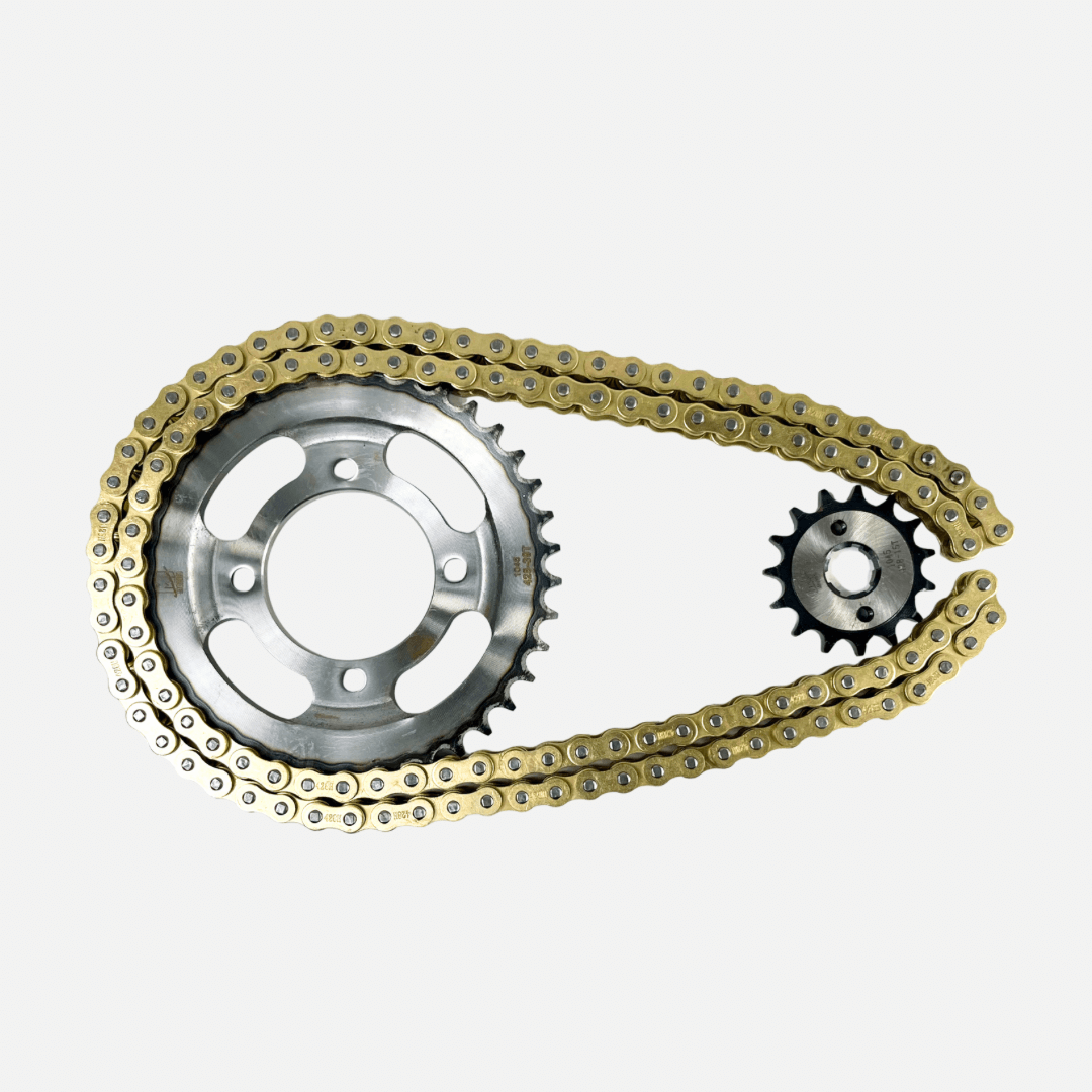 Su cadena 39T/15T 428H-124L garantiza un movimiento preciso y eficiente , reduciendo el desgaste y manteniendo una transmisión suave y confiable . Además, su acabado en color dorado no solo brinda una apariencia deportiva y moderna , sino también una capa adicional de protección anticorrosiva .