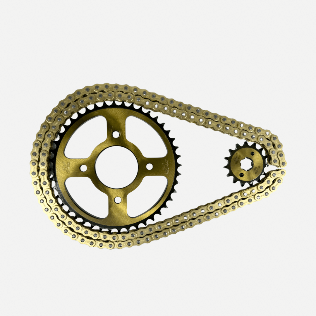 - Tipo: Kit de transmisión completo (piñón, catalina y cadena)